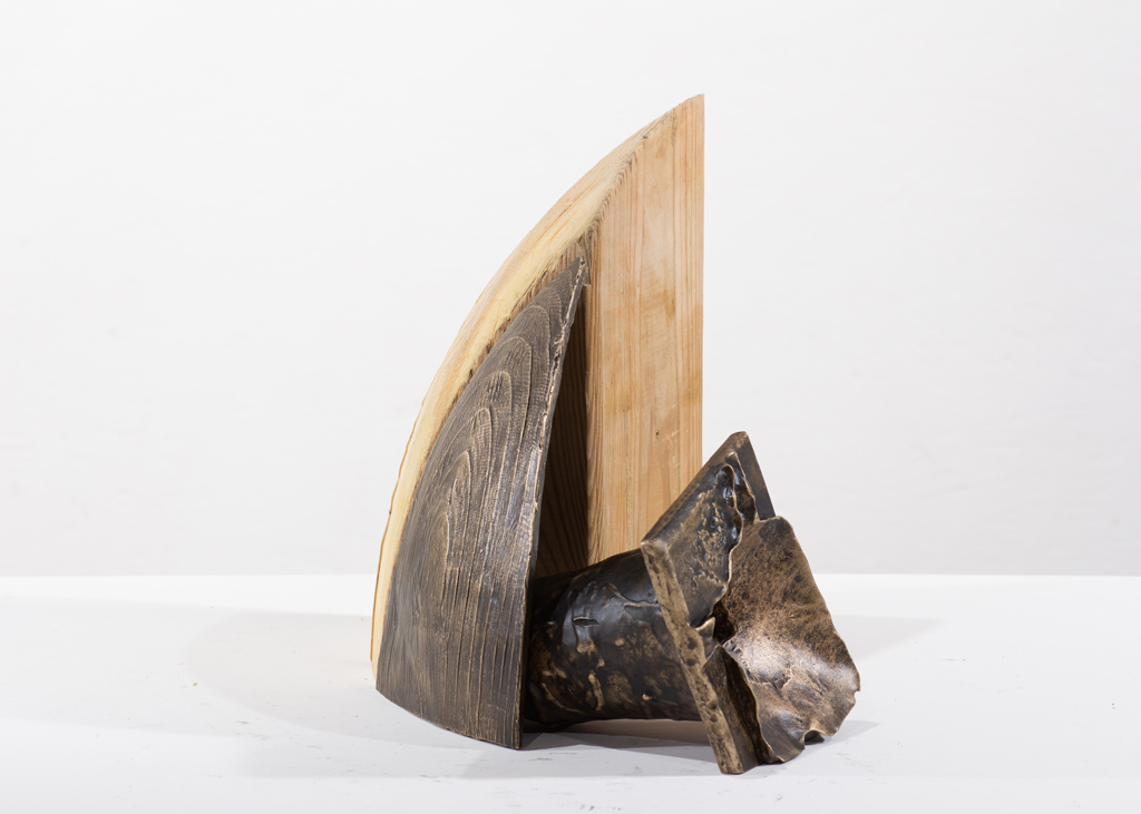 Lorsqu’on fait évaluer un projet de bronze à la fonderie, les calculs se font en pouces carrés et non en pouces cubes. Surprenante de prime abord, cette manière de voir la forme est pourtant bien logique parce qu’un bronze est généralement vide. Ainsi, l’on pourrait dire que la forme pleine de bois est un volume alors que son simulacre de bronze est une surface, une surface qui en principe devrait se refermer autour du vide.