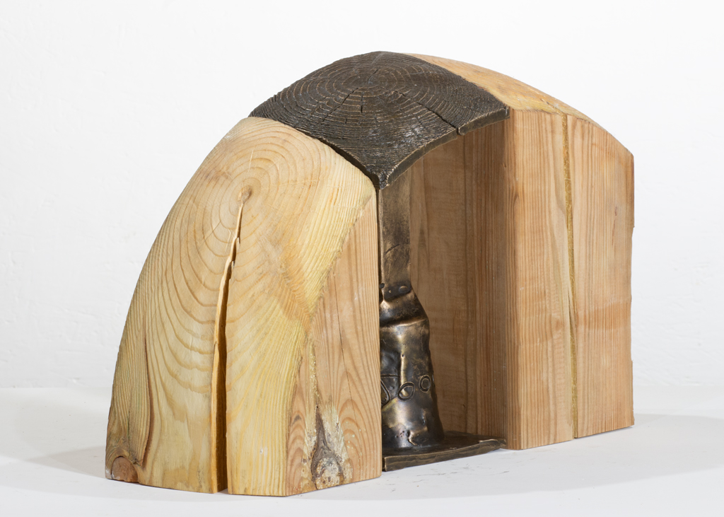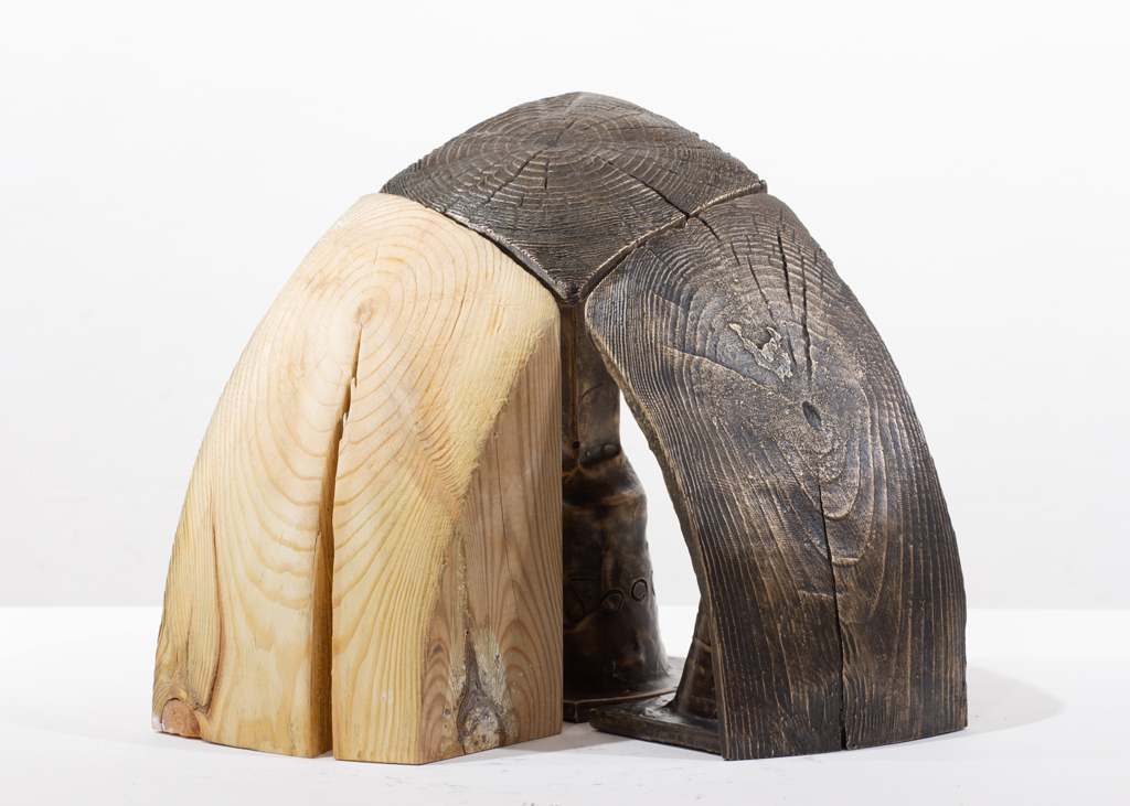 Disons-le encore autrement. Du fait de la sectionner, la masse de bois a gagné en surface. Du fait de la garder ouverte plutôt que de la refermer autour du vide, la surface de bronze divisée en plusieurs parties tenues en place par autant de pièces de soutènement, a gagné en volume.