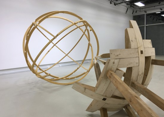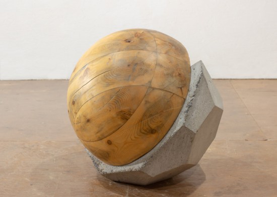 La même sphère de cinquante centimètres est toujours construite en assemblant des volumes pleins de profil standardisé, soit de 5 x 5 pouces. Or dans cette série, j’introduis le béton qui, en qualité de matière moulée, sert bien-sûr à créer avec le bois un contraste de matière et même de procédé. La chose la plus […]