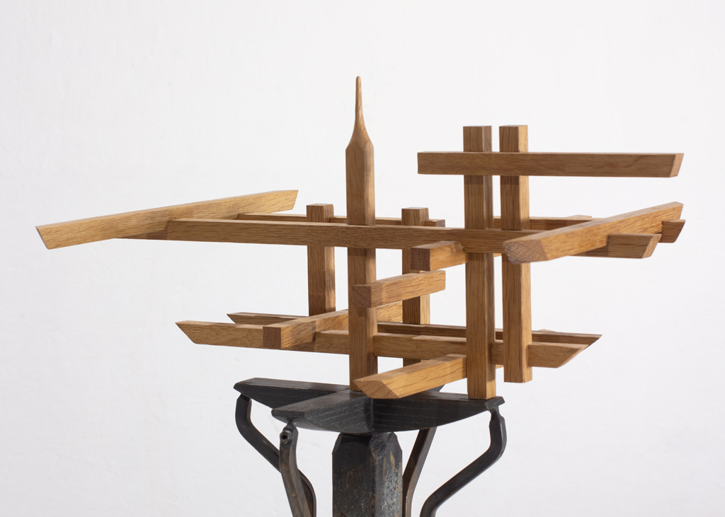 L’on reconnaît mes petites ancres de bois qui encore, s’amarrent à ma toute première étude armillaire. Or si l’une d’elles se présente en bronze, elle viendra avec le fatras qui aura permis de la couler, soit un réseau de masses et d’éléments linéaires qui tient autant de circulations que d’architecture. Et puis, si l’on continue en bois ou avec autre chose?