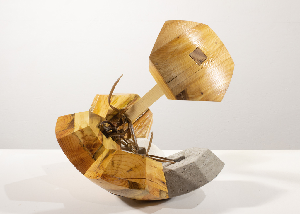 Bois (frêne blanc, pin rouge), béton armé, plâtre hydrocal, babiche, vernis uréthane