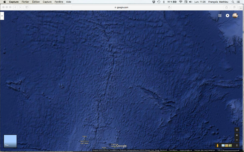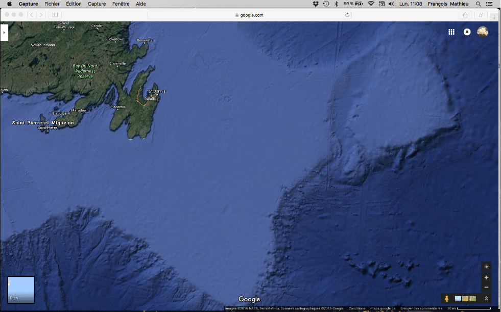 Cette importante traversée est décidément affaire de navigateur. Safari, le bien nommé, m’ouvre la photo satellite de Québec. On n’en restera pas là ; il faut être déterminé pour ainsi tasser une capitale, aussi modeste soit-elle à ses heures, dans la feuillure d’un cadre et ce, pour faire place à des espaces apparemment boisés.