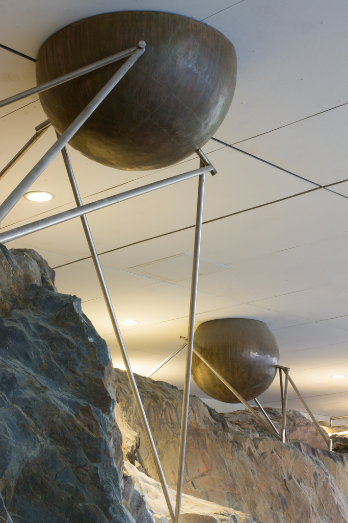 Quelque part dans la lune Quelque part dans la lune 2016Polyvalente St-François, BeaucevilleOdette Roy et Isabelle Jacques inc, architectesLaiton, acier inoxydableDiamètre de chaque sphère, 1 m.Réalisé avec Bernard Paquet, chaudronnier Articles similaires
